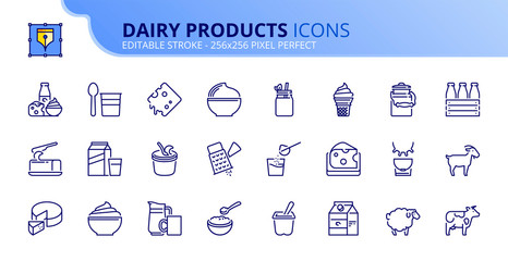 Simple set of outline icons about dairy products.