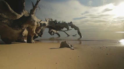 Surrealistic landscape with a cup of coffee and a coffee mill on the seashore. Animation.