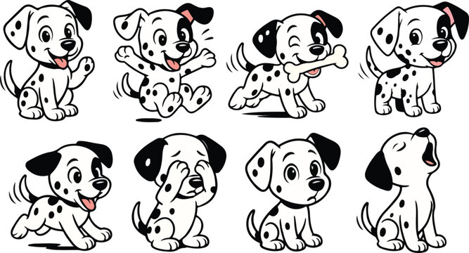 vector illustration of dalmatian dog puppies funny cute cartoon mascot character cartoon with 8 poses