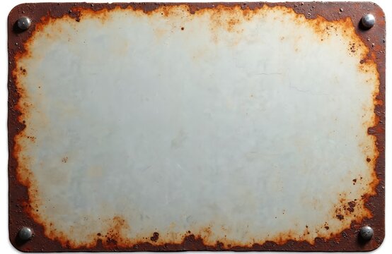 Rusty metal sign with a white background and a brown border. Suitable for adding a vintage touch to designs, vintage-themed projects, or signage for old-fashioned or antique-related concepts.