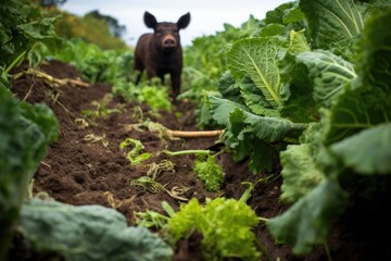 A severe hailstorm damaging crops in a rural farmland area, with hailstones covering the ground.