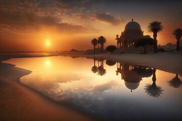 Wonderful seaside sunrise in Saudi Arabia's Dammam. Generative AI