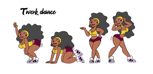 Two couples dressed in 1920s style dancing the Charleston in an old movie frame, vector illustration, EPS 8