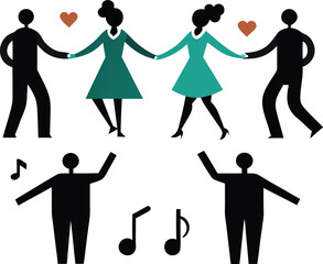 Vector illustration couple dancing icons bundle scalable eps for romance and celebration