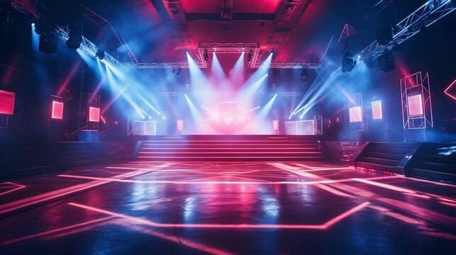 Concert Stage Scenery With Spotlights and Colored Lights, realistic image