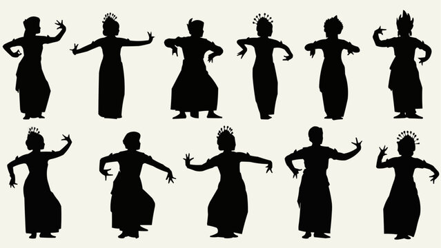 Ballet Dancer Silhouette Collection Vector Illustration,Black and white vector silhouette of couple dancing,set of men and women street dancers in silhouette, Set of black solid people dancing,Ai