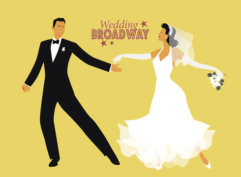 minimalist illustration of happy bride and groom