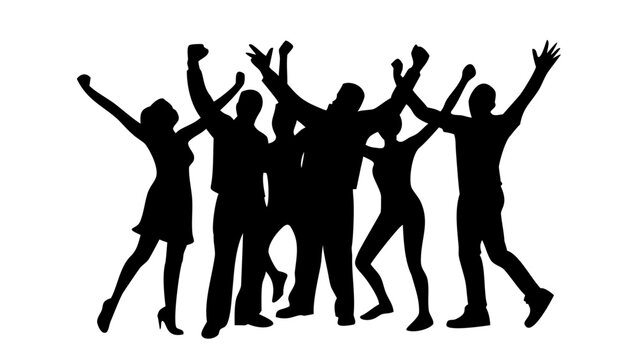 silhouettes of people dancing , Silhouettes of people celebrating with arms raised on white background