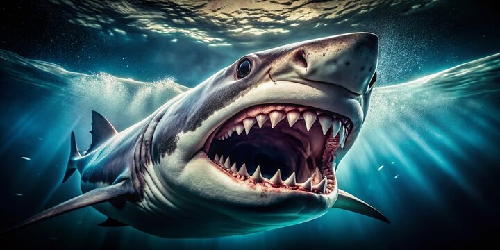 Great White Shark Ocean Predator  Jaws Open  Wildlife  Marine Animal  Underwater Scene