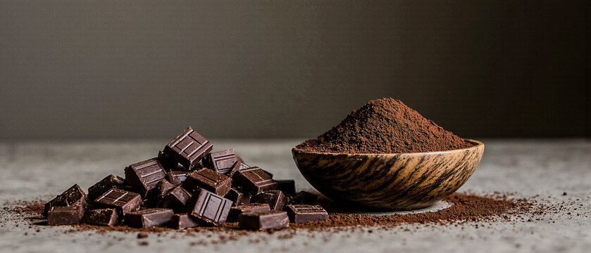 Coffee beans on the table and in the black bowl isolated on dark wooden background. copy space