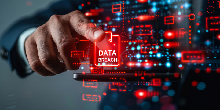 Executive Using Smartphone to Manage Data Breach Warning, Digital Security Alert on Virtual Interface with Icons