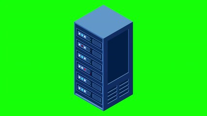 Data center server box. Hosting server or data center room concept. Isometric hardware server case cabinet. 4K seamless loop animation