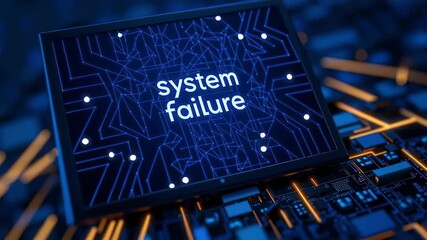 System failure blue screen error message cyber security digital glitch computer monitor circuit board technology data network computer error cyber