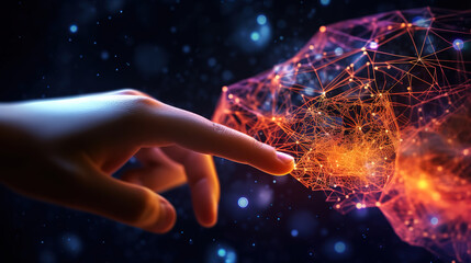 Launching into the Future: A hand ignites a holographic rocket formed from data points, symbolizing digital innovation and technological advancement.