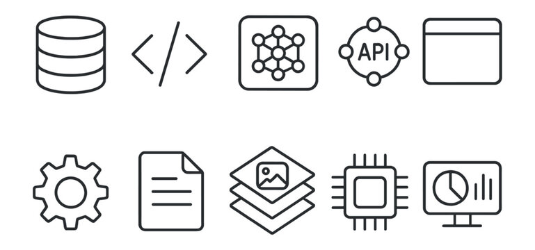 Collection of cloud computing icons illustrating various technology concepts related to data storage and management