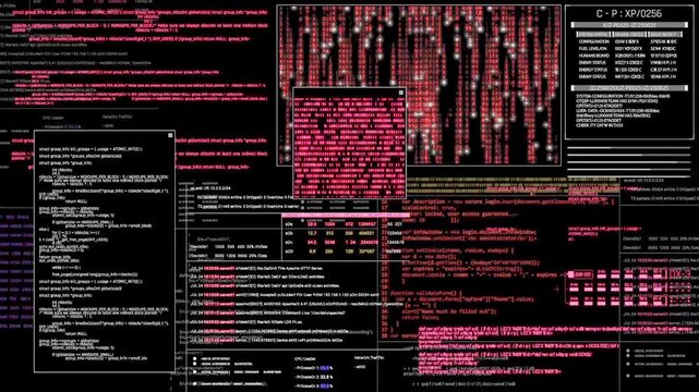glitch code game computer screen. Code data computer screen with glitch distortion CRT Monitor styled blue binary code motion background animation digital glitch effect. retro technology background