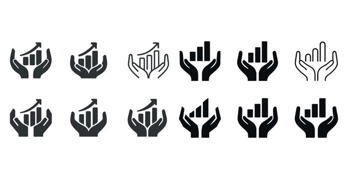Growth chart icons with hands symbolizing economic development a