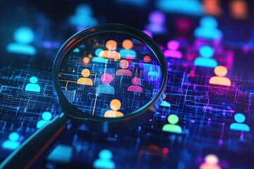 Searching connected network of people. Finding talent for recruitment concept