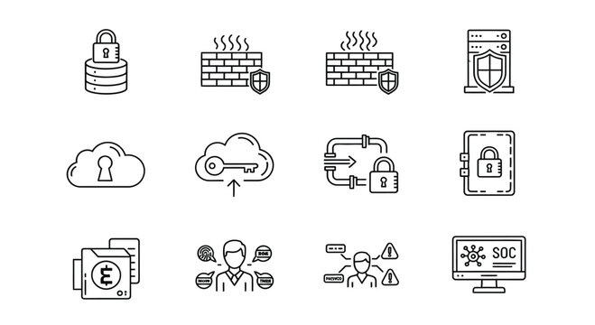 Cybersecurity and data protection icons showcasing digital security measures and data encryption