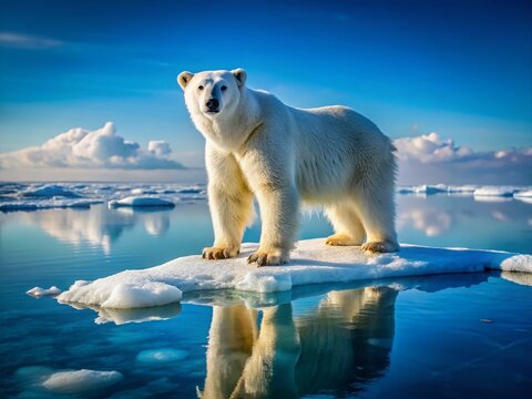 Majestic Polar Bear on Melting Arctic Ice Floe, Davis Strait, Nunavut, Canada