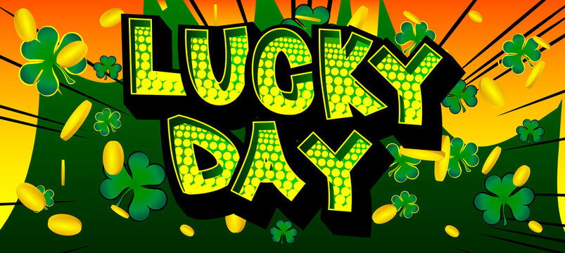 Banner with Shiny green hat, gold coins and clover leaves. St. Patrick's day concept. Generative AI illustration