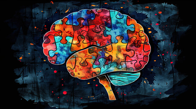 World autism awareness day card or banner, autistic kid colorful brain made of puzzle