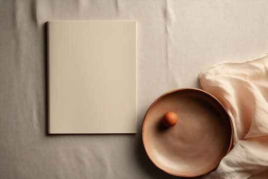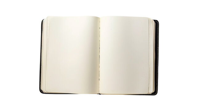 An open blank book with white pages, ready for writing, drawing, or note-taking. Ideal for creative projects and educational purposes.