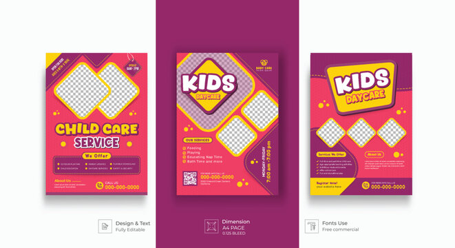 Childcare center and babysitter flyer or poster template, Colorful Childcare flyer