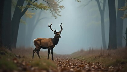Majestic Deer Standing Calmly in Lush Green Forest Daylight