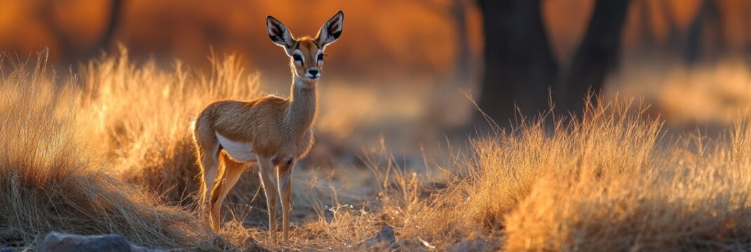 Young Deer Standing in a Meadow at Sunset with Glowing Light