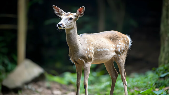 Young Deer Standing in Tall Green Grass in a Forest Glade