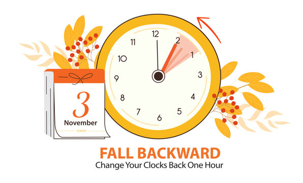 Daylight saving time ends reminder with clock illustration