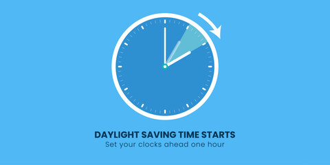Daylight Saving Time Begins. Spring forward. Set clock ahead one hour. Vector illustration