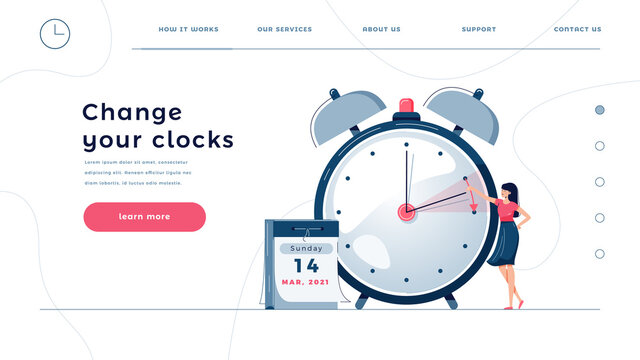 Daylight Saving Time Begins. The clock turns one hour on March 9, 2025. Spring forward concept banner. Vector illustration