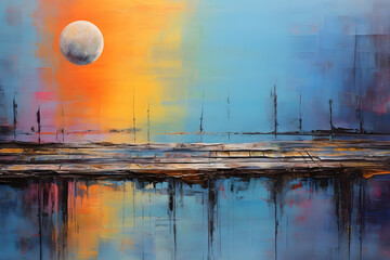 Deserted Dock Daze, abstract landscape art, painting background, wallpaper, generative ai