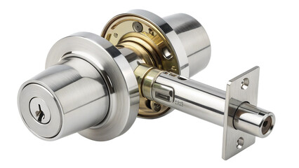 Polished metal deadbolt lock cylinder with keyhole and bolt mechanism