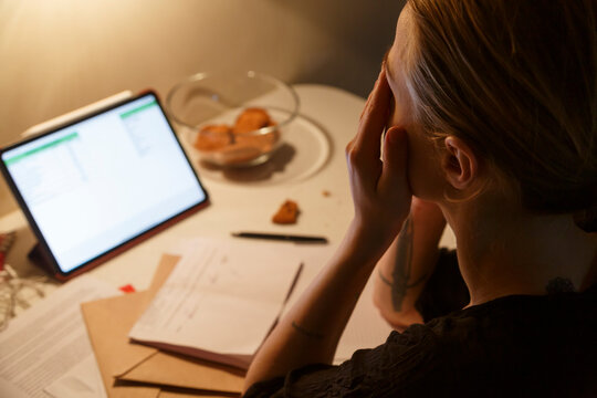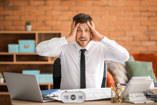 Work stress, tired or fatigue from overworked, busy to finish project within deadline, anxiety or exhaustion, headache concept, frustrated businessman sitting on office desk with busy unfinished work.