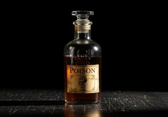 Brown glass bottle with a skull and crossbones symbol, indicating poison or danger, set against a light blue background.