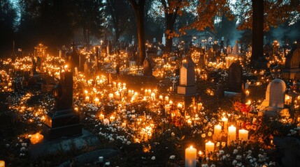 Candlelit Cemetery: A solemn and luminous landscape of remembrance and reflection