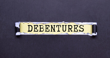 Debenture is a type of long-term business debt not secured by any collateral, colourful text concept background