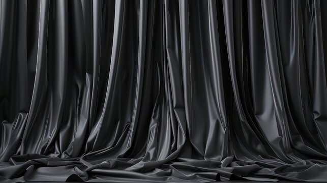 black fabric curtains flying for grand opening ceremony dramatic textile texture 3d render illustration set