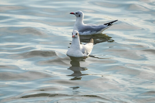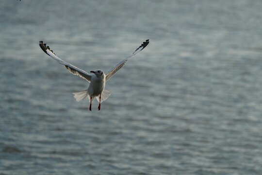 Seagulls fly for food. Samut Prakan Province, Thailand, taken on 18 Dec. 2022.