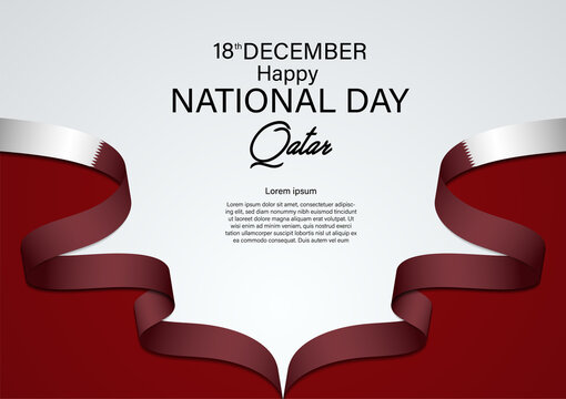 Qatar national day 18 th december with ribbon qatar flag color. vector illustration