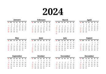 Illustration vector of 2024 Calendar