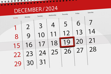 Calendar 2024, deadline, day, month, page, organizer, date, December, thursday, number 19