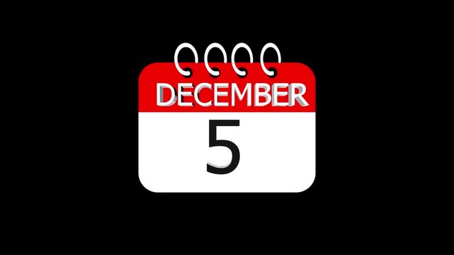 December 5 Calendar cyan color Animation, with Free for Notes and Writing element. Red background 4k video.
