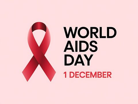 Red ribbon awareness design for world aids day 1 december symbolizing hiv prevention, healthcare support, charity campaign advocacy, solidarity for global health, education, medical awareness and icon