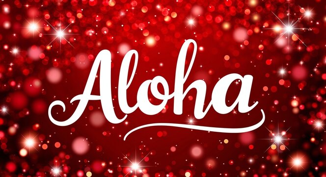 aloha calligraphic lettering on red bokeh glitter festive sparkles background