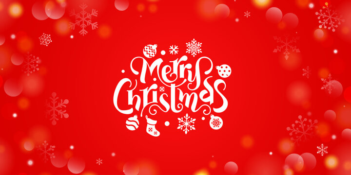 merry christmas red bokeh abstract background with snowflakes and typography with christmas elements
