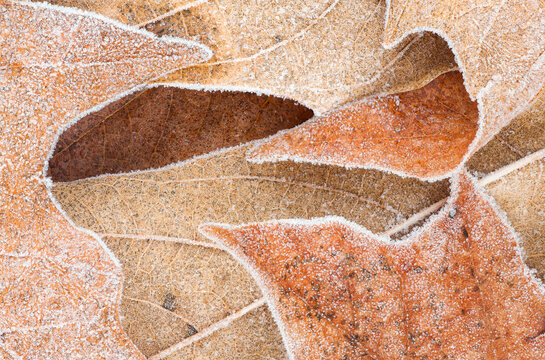 Breathtaking Branch Adorned With Orange And Yellow Leaves In Late Fall Or Early Winter Covered By Snow: First Snowfall Reveal.